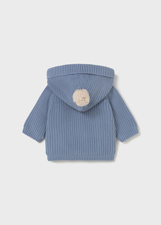 Cárdigan de manga larga para recién nacido. Cuello con capucha. Cierre con cremallera delantera y alamares. Tejido de punto tricotosa de tacto suave y agradable. Bolsillos funcionales en la parte delantera. Elementos de adorno: pompón.