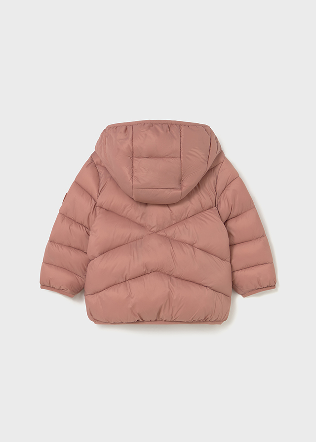 Contiene poliéster reciclado. Chaquetón de manga larga para bebé. Cuello con capucha. Cierre central delantero con cremallera. Exterior textil con efecto acolchado. Bolsillos funcionales en la parte delantera.