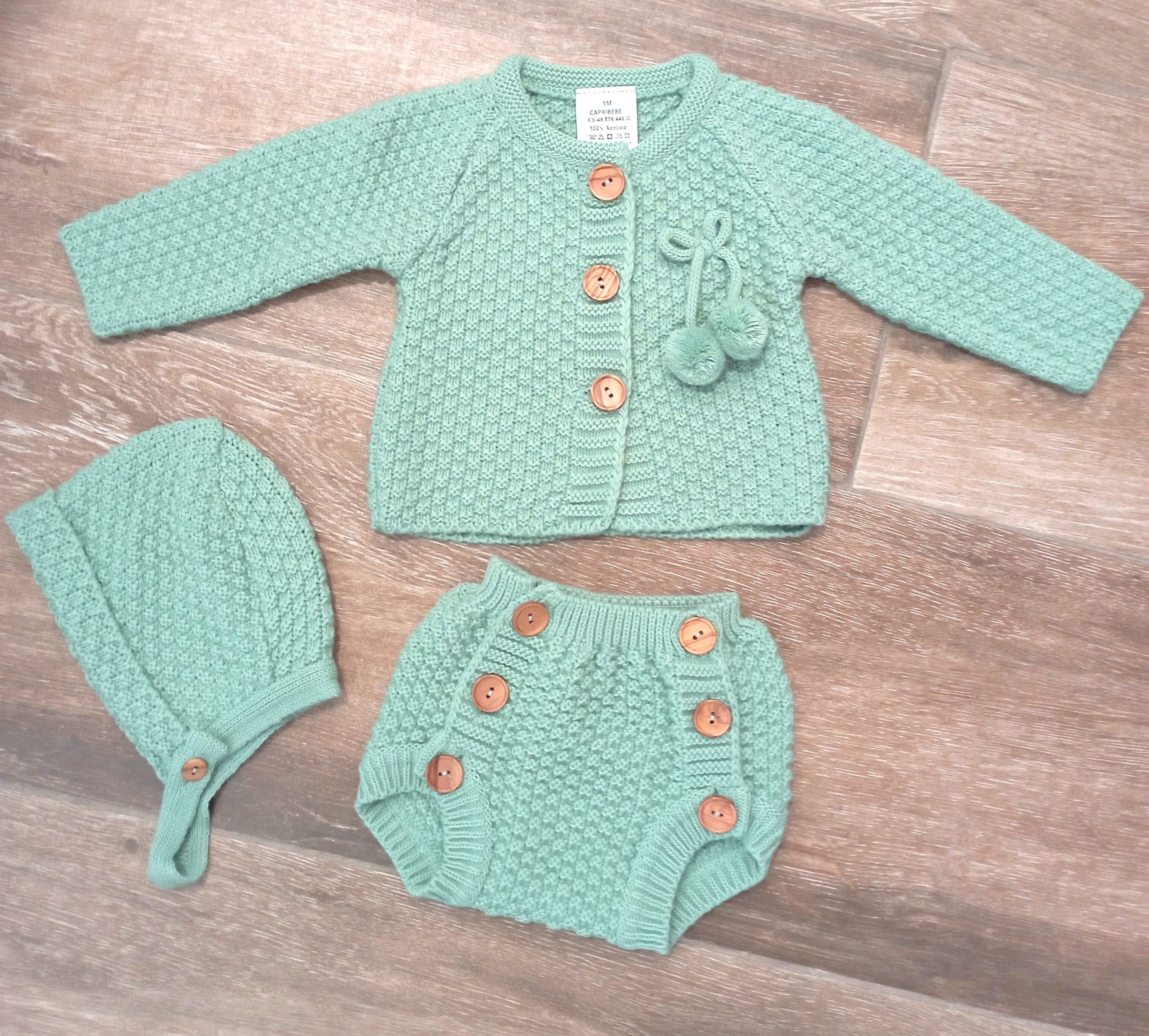 • Capota de punto coordinado, que completan el look manteniendo su cabecita abrigada y protegida.