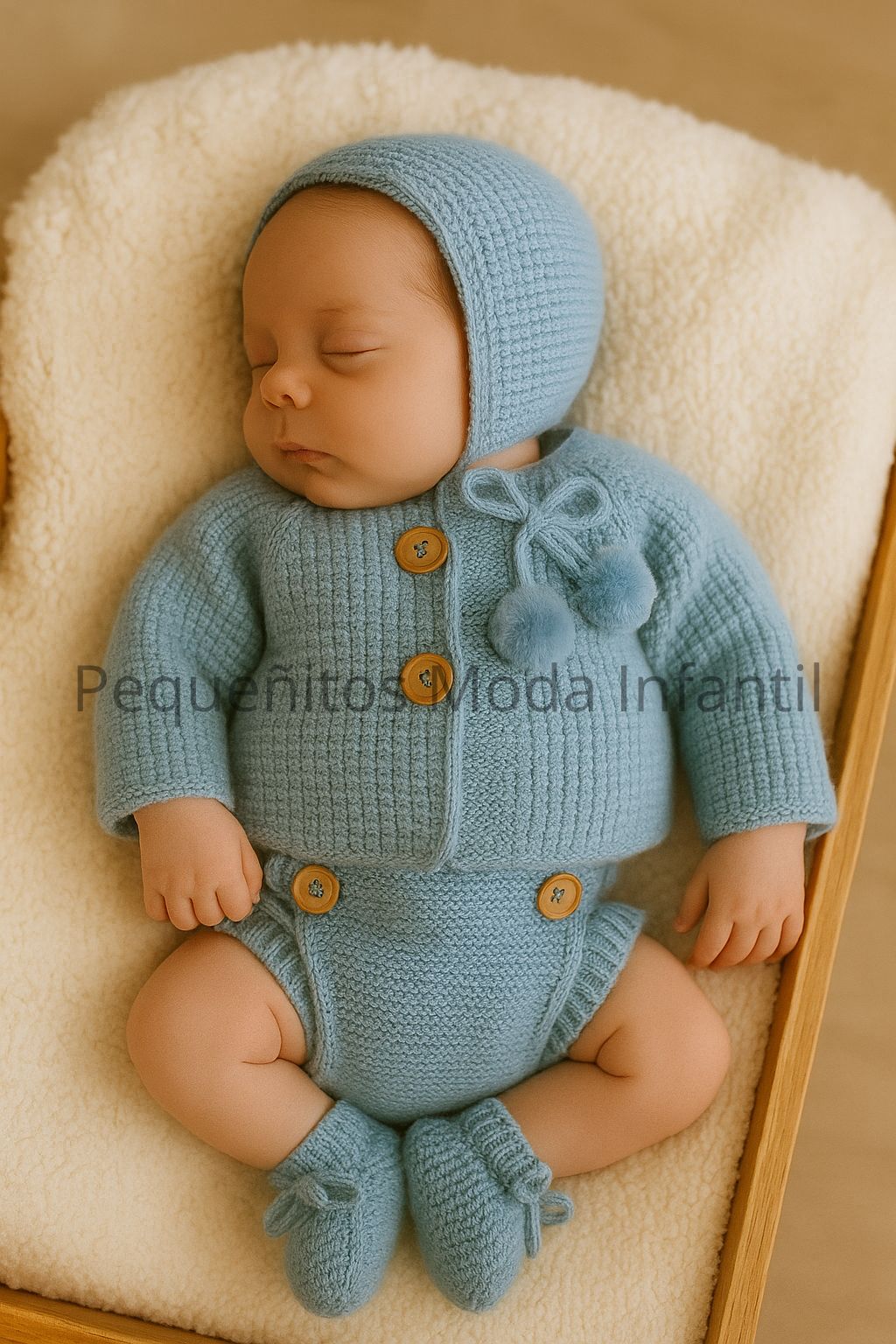 Este delicado conjunto está diseñado para envolver a tu bebé en suavidad y encanto desde su primer día.