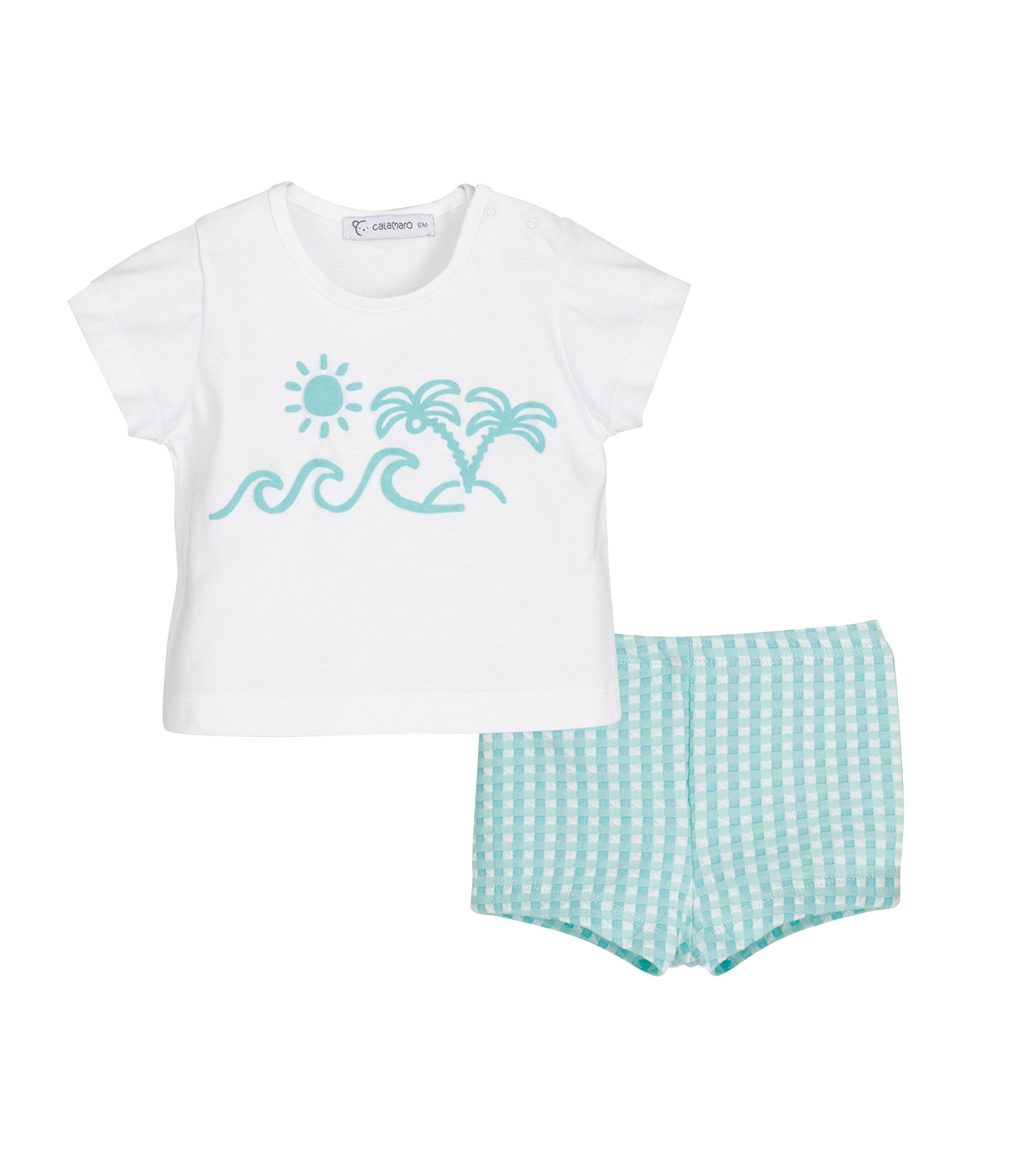 Conjunto Baño Vichy de la colección Primavera-Verano 2026 de la marca Calamaro Baby.