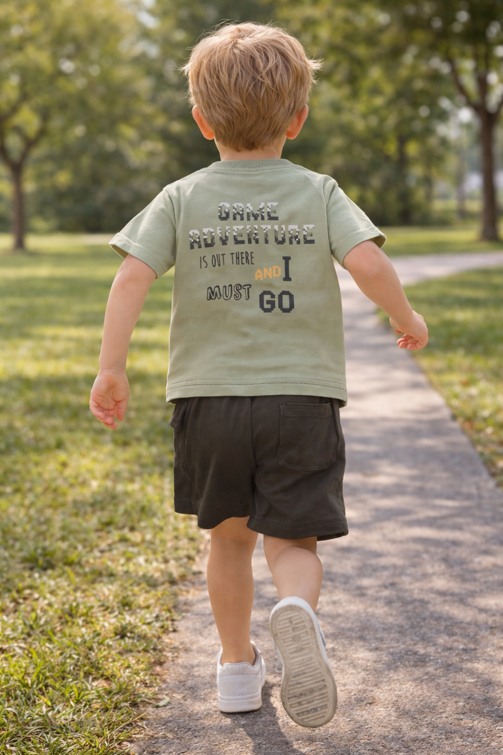 Este conjunto incluye una camiseta de manga corta con dibujo estampado y un pantalón de chándal con cintura elástica. La camiseta está confeccionada en 100% algodón. Disponible en tallas desde los 2 a 4 años.