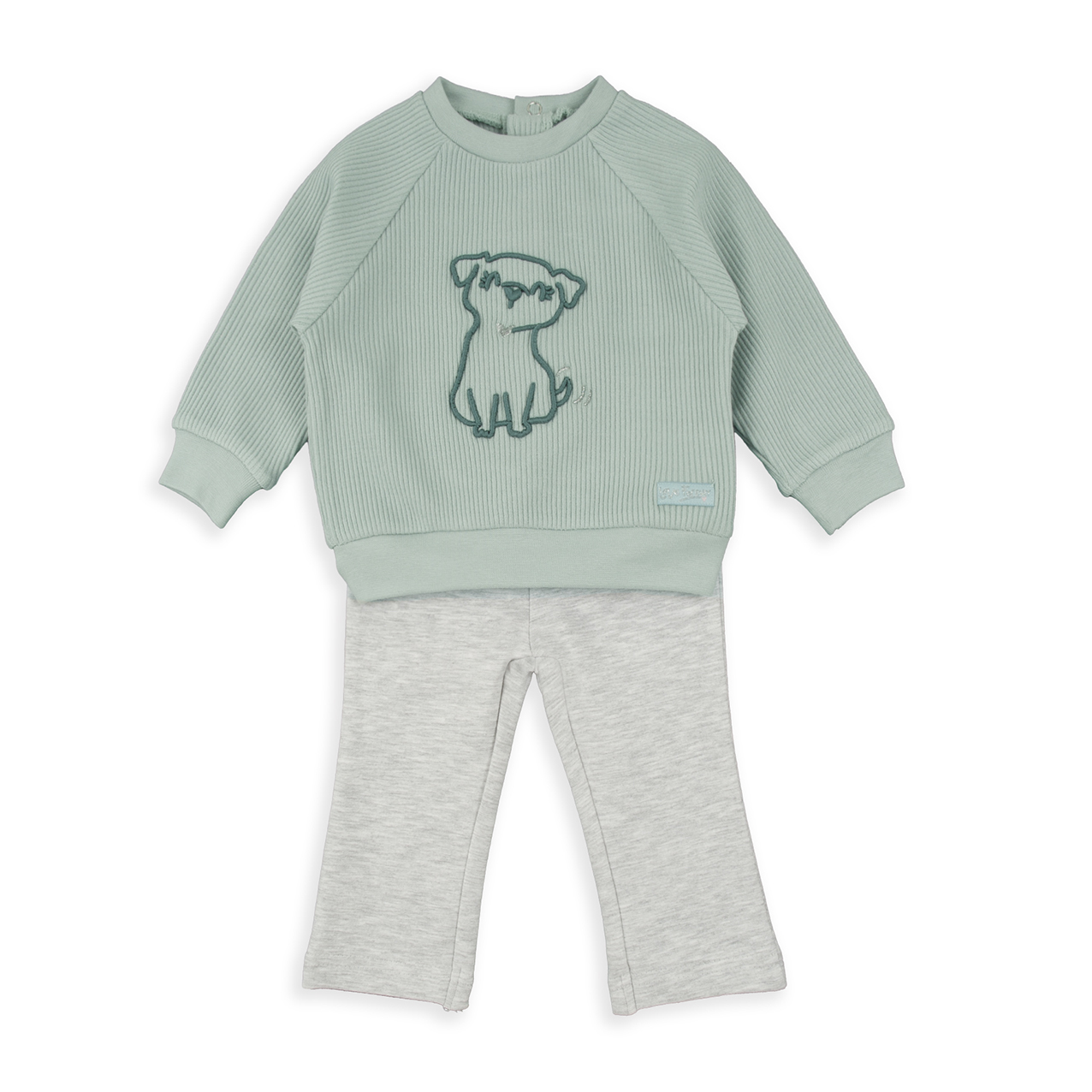 Este conjunto de Babybol es la combinación perfecta entre estilo y comodidad para niñas de 4 a 7 años. La sudadera de canalé en color verde, con un bonito detalle decorativo en la parte delantera, aporta un toque moderno y original. El legging gris de campana, confeccionado en tejido elástico, estiliza la silueta y proporciona libertad de movimiento, convirtiéndolo en una opción ideal para el día a día.