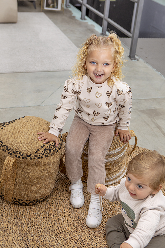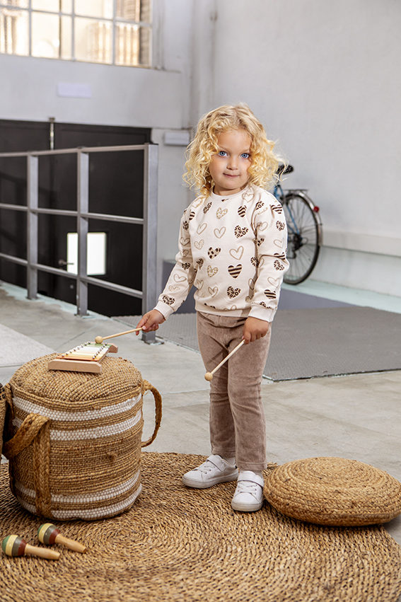 Este encantador conjunto de Babybol es ideal para niñas de 4 a 7 años que quieren vestir cómodas sin renunciar al estilo. La sudadera en color crudo, con un dulce estampado de corazones, aporta calidez y un toque romántico perfecto para el día a día. El legging, confeccionado en tejido elástico y suave, garantiza libertad de movimiento y comodidad en todo momento.