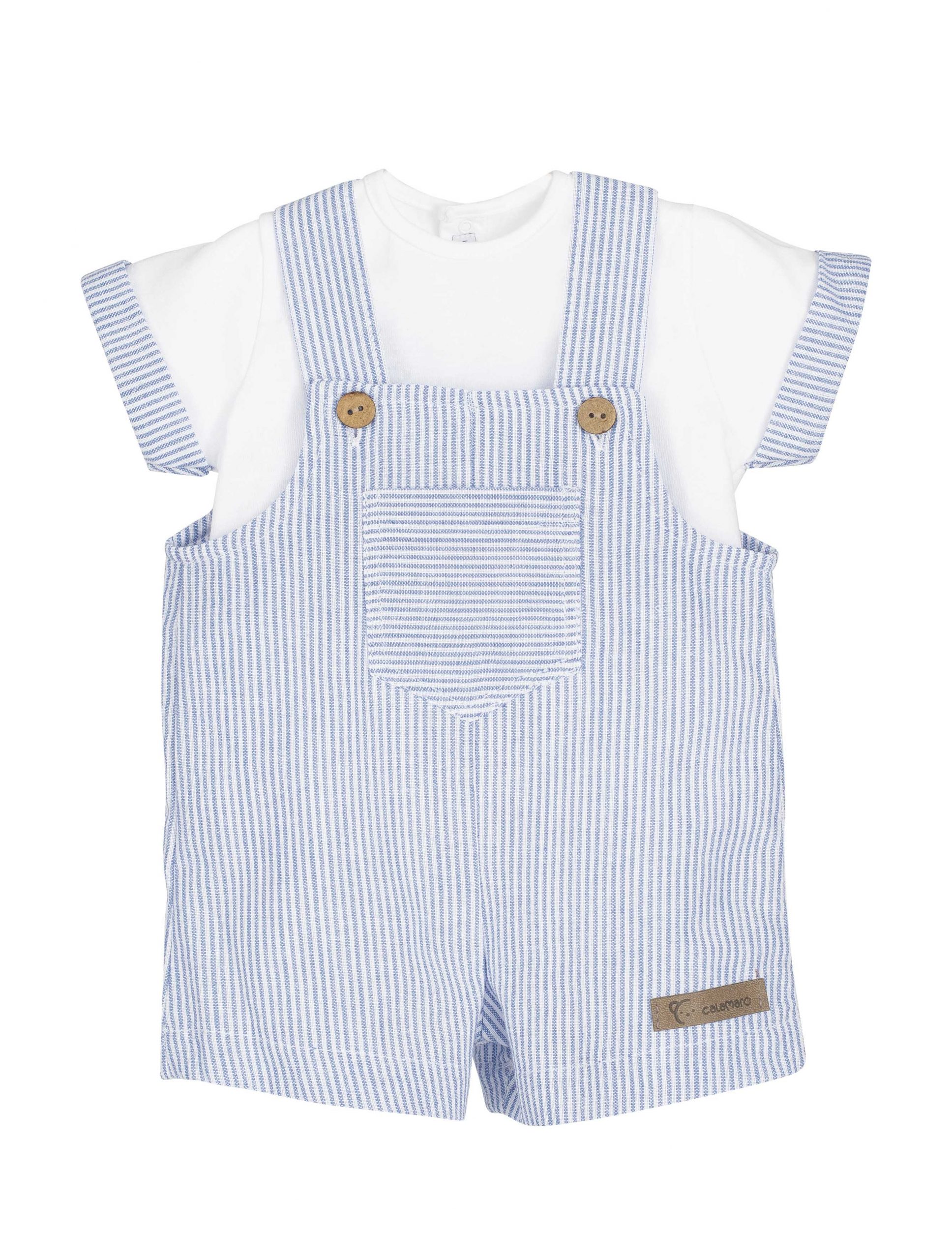 Fresco, cómodo y con todo el estilo de Calamaro Baby. Este peto ligero de la nueva colección Verano 2026 combina diseño clásico y tejidos suaves, ideales para los días cálidos. Compuesto por dos piezas.Camiseta de algodón y peto para completar el conjunto.Confeccionado con materiales de alta calidad y cuidado detalle artesanal, ofrece libertad de movimiento y confort para los más pequeños sin renunciar al estilo. Perfecto para lucir en cualquier ocasión veraniega.
