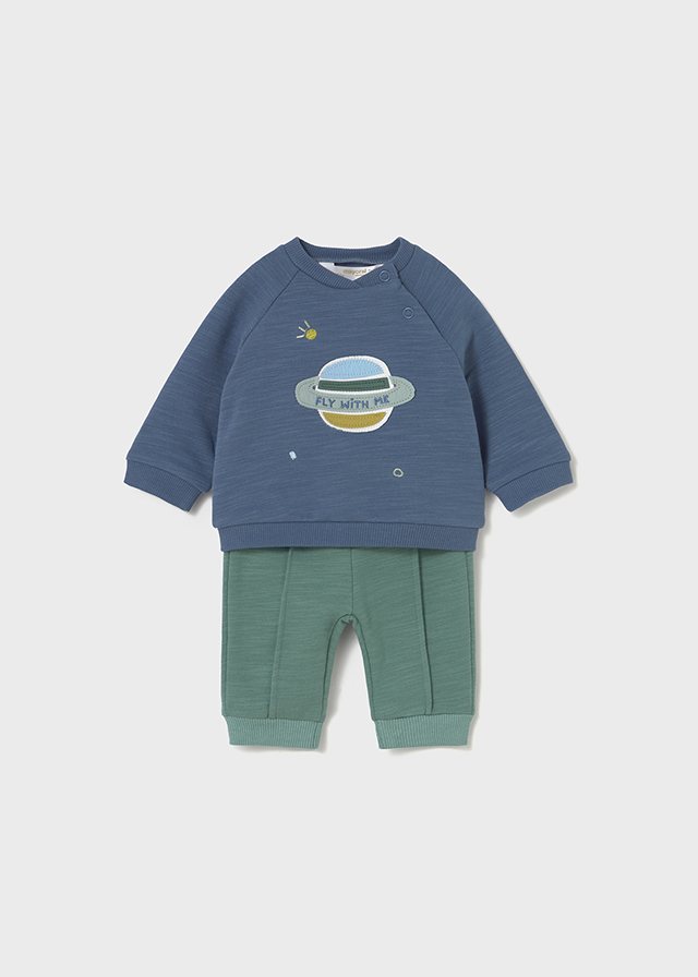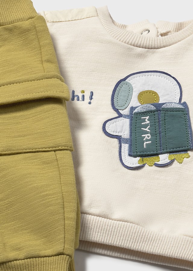 Pantalón largo deportivo para recién nacido de gran confort. Cinturilla elástica. Bajo elástico para un mejor ajuste.