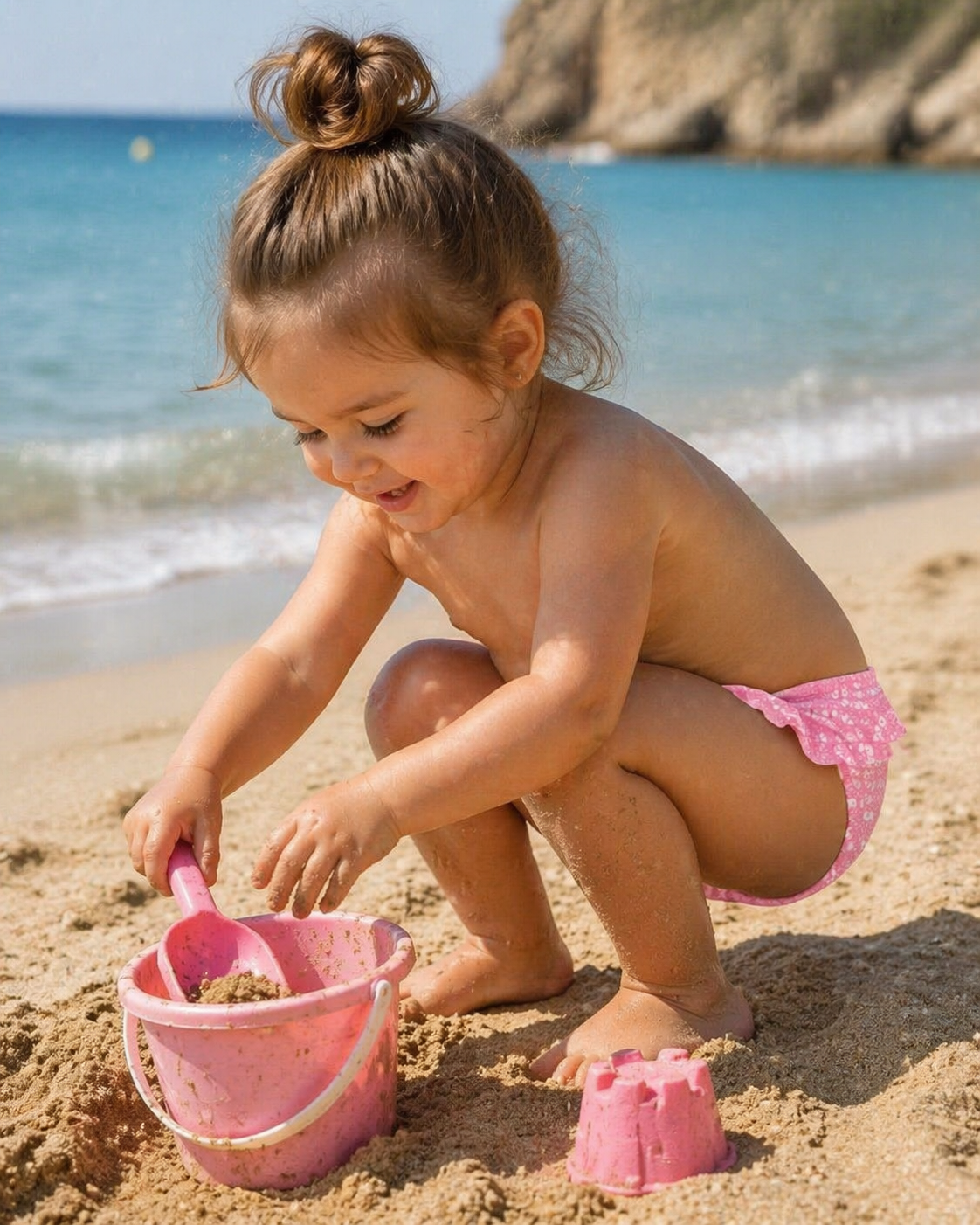 Culetín de baño para bebé texturizado con estampado de flores y volantes.
