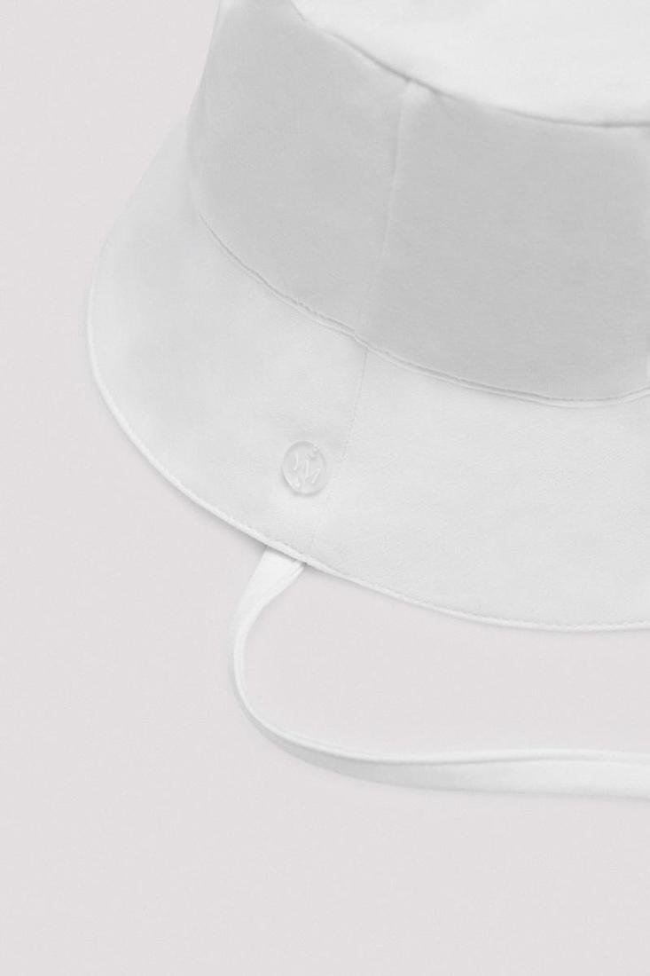 Gorro de bebé color blanco. Diseñado para protegerlo del sol. Este gorro es práctico y perfecto para mantener la cabeza del bebé protegida del calor.