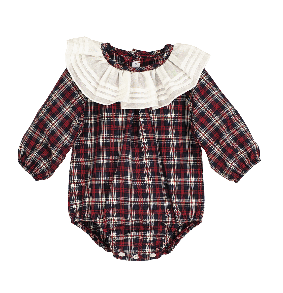 Pelele Monzón de bebé niña de la nueva temporada Otoño-Invierno, colección de Navidad 2025-2026 de Calamaro Baby, ideal para la temporada otoño/invierno. Compuesto por tres piezas cuidadosamente diseñadas: