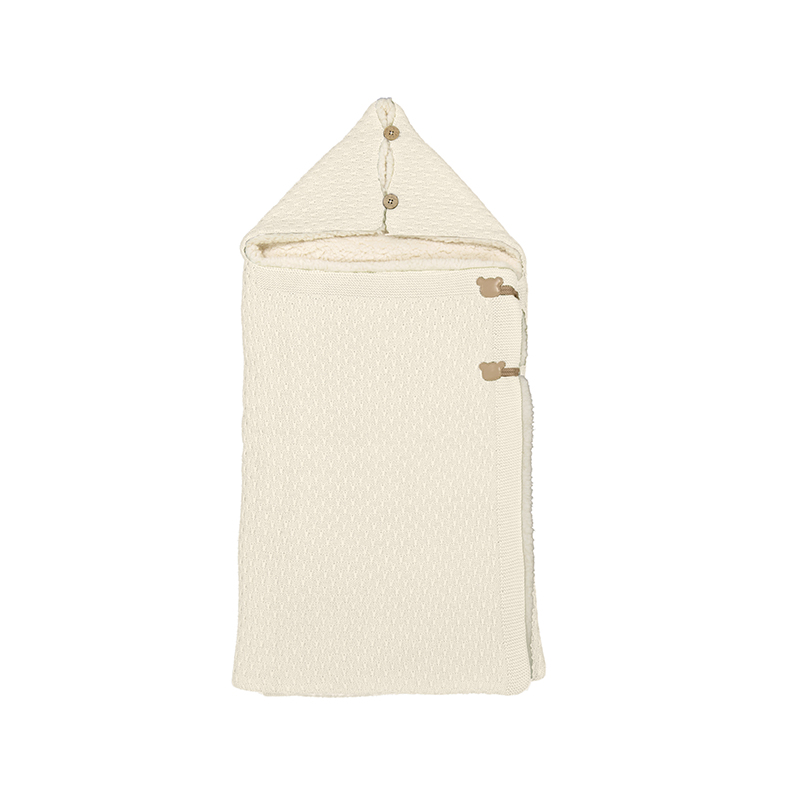 Agradable saco para capazo con diseño envolvente, de tacto suave y gustoso. Pensado para abrigar a bebés recién nacidos y adaptable a todo tipo de carros. Cierre lateral con botones. Tejido de punto tricotosa de tacto suave y agradable. Cuerpo interior forrado con pelo fino y suave.