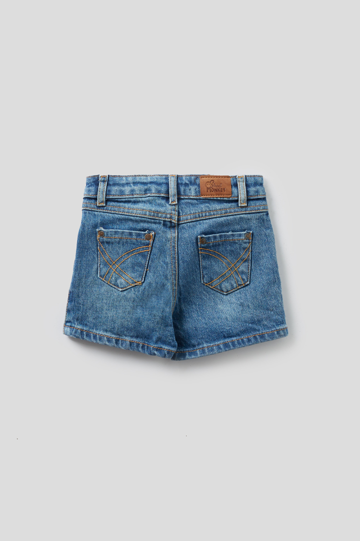 Shorts para niña . Goma elástica en la cintura para un mejor ajuste. Cierre de cremallera y botón. Bolsillos en ambos lados.