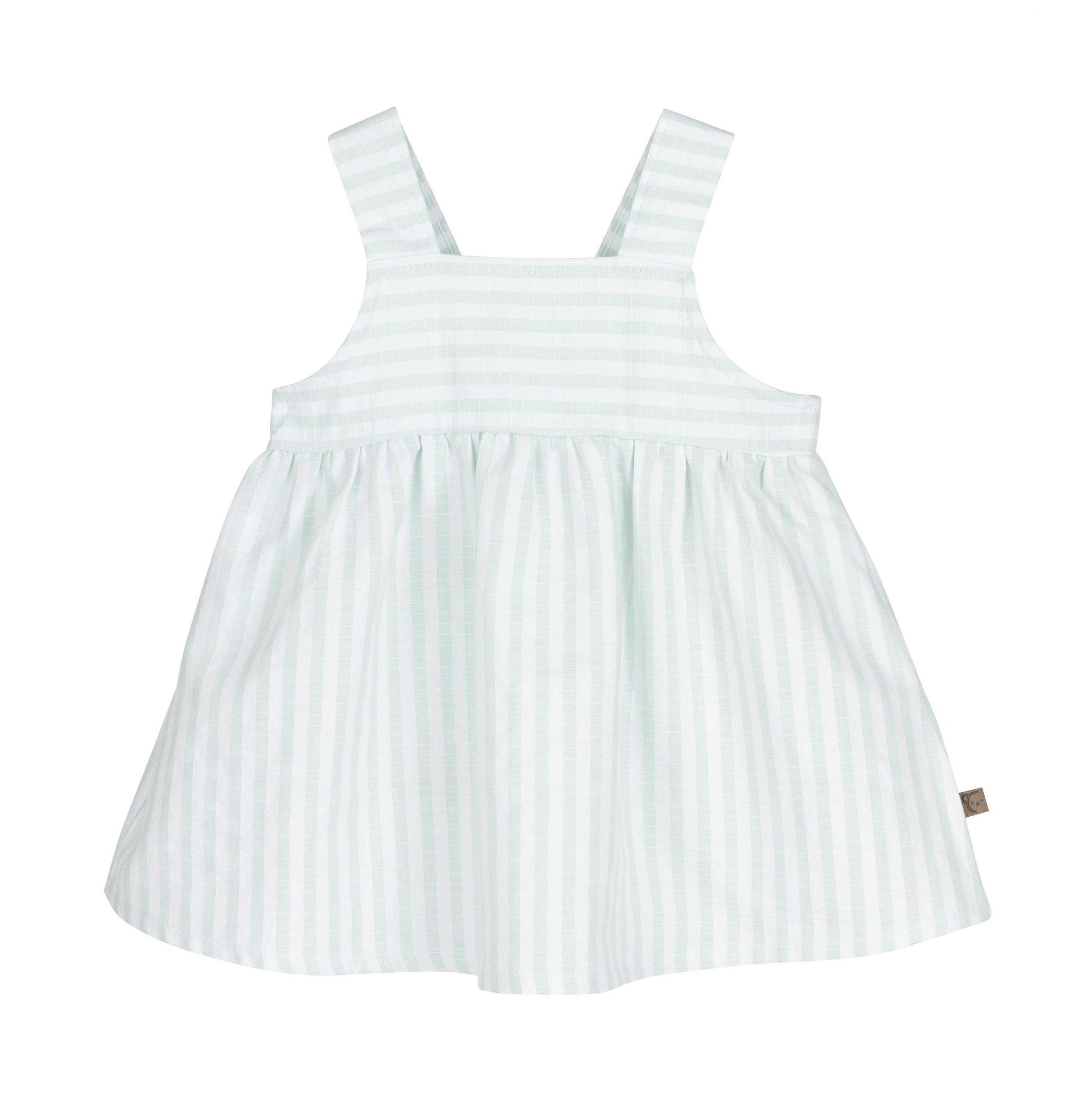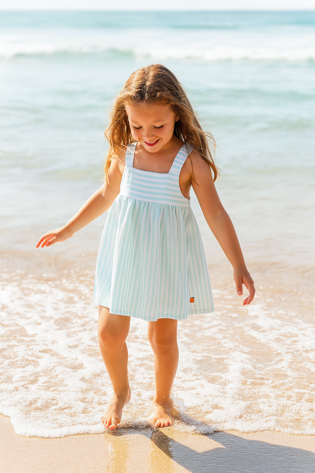 Vestido ligero y lleno de encanto pensado para los días más cálidos. Con confección en tejido suave de rayas en tonos menta y blanco, el Vestido Bundi combina comodidad y estilo delicado para que los peques disfruten del verano con total libertad de movimiento. Ideal para paseos, juegos y cualquier ocasión estival con un toque fresco y elegante.